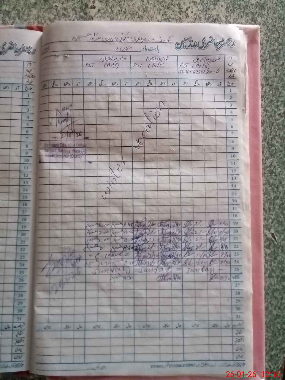 | Name: SI**** IS**** Designation: (School Headmaster's/Headmistress's) PST Phone/Cell Number: 03**** |