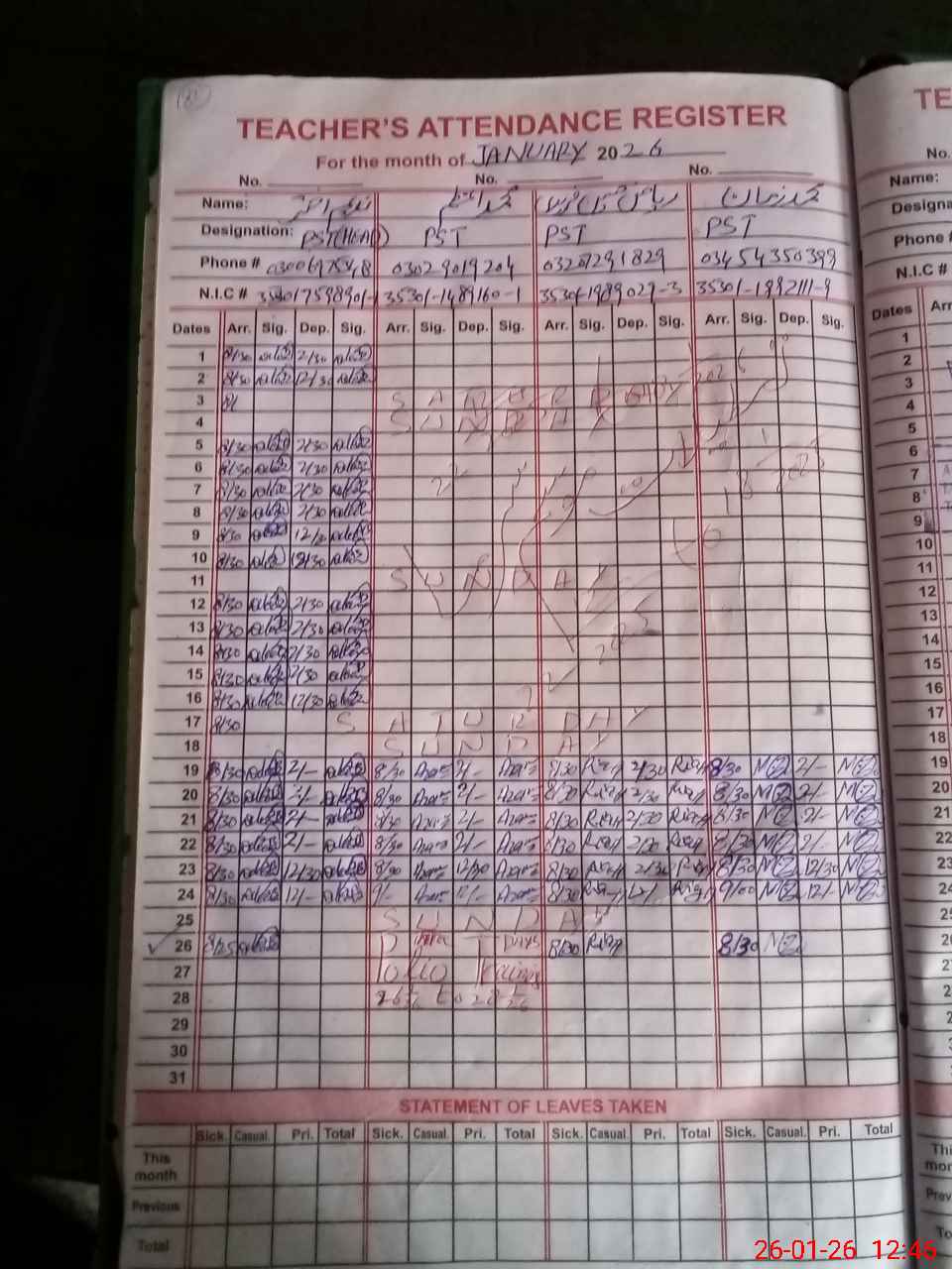| Name: NA**** AK**** Designation: (School Headmaster's/Headmistress's) PST Phone/Cell Number: 03**** |