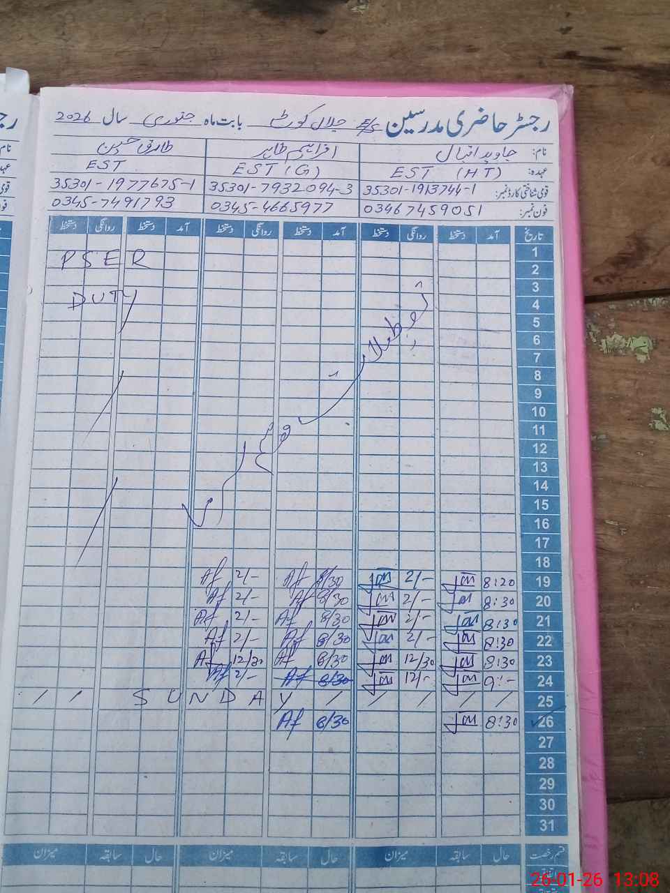 | Name: Ta**** Hu**** Designation: (School Headmaster's/Headmistress's) Est General Phone/Cell Number: 03**** |