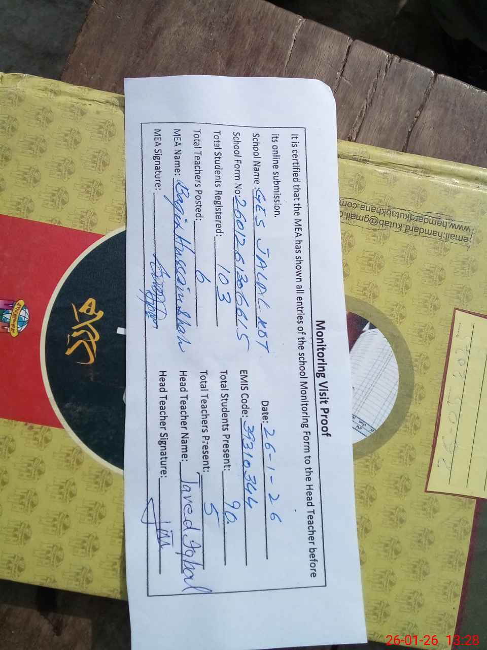 | EMIS Code: 39310344 | Name of School: GES JALAL KOT | |||