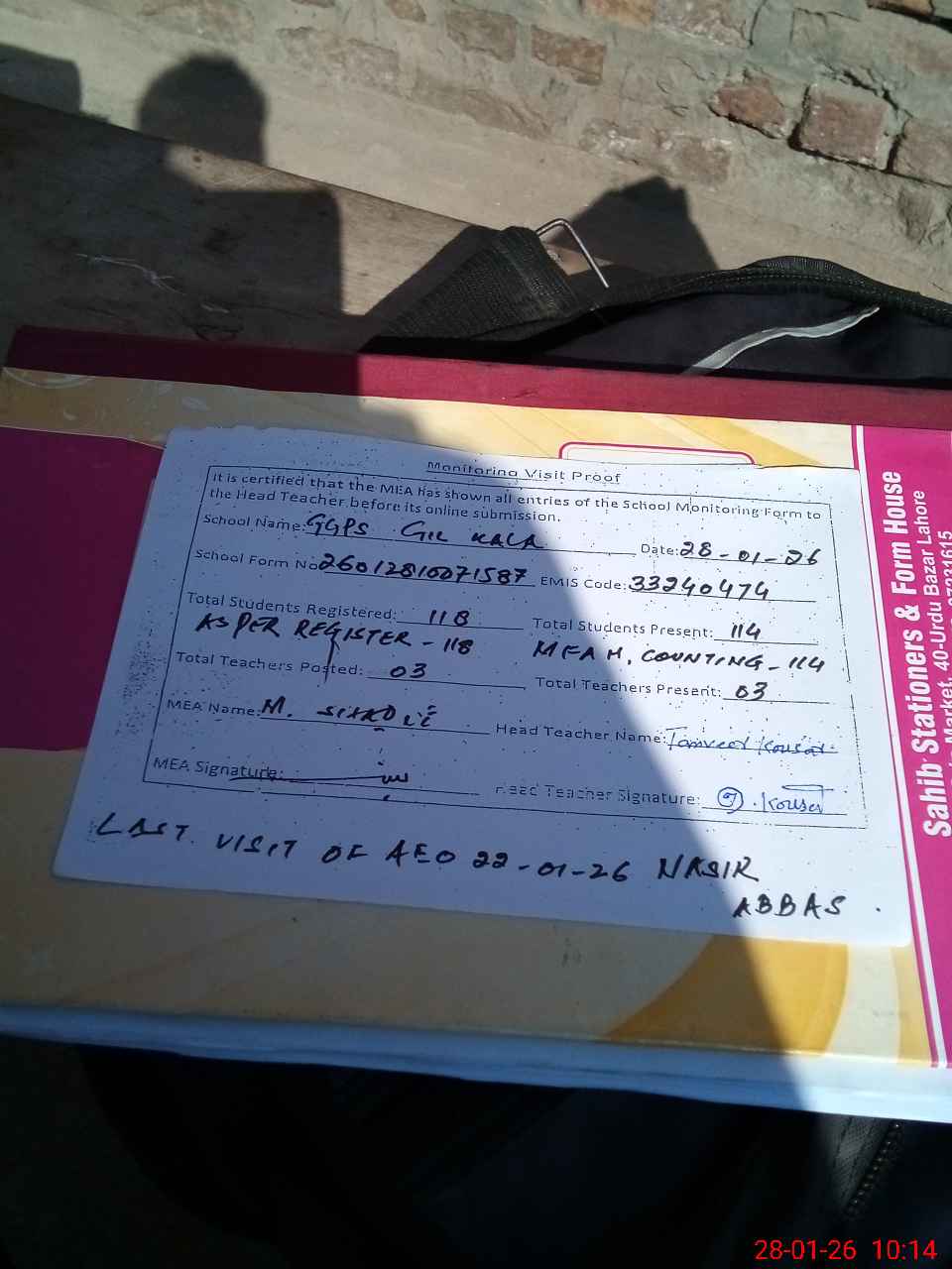 | Attendance Register | Head Teacher | MEA with School | Visit Proof |