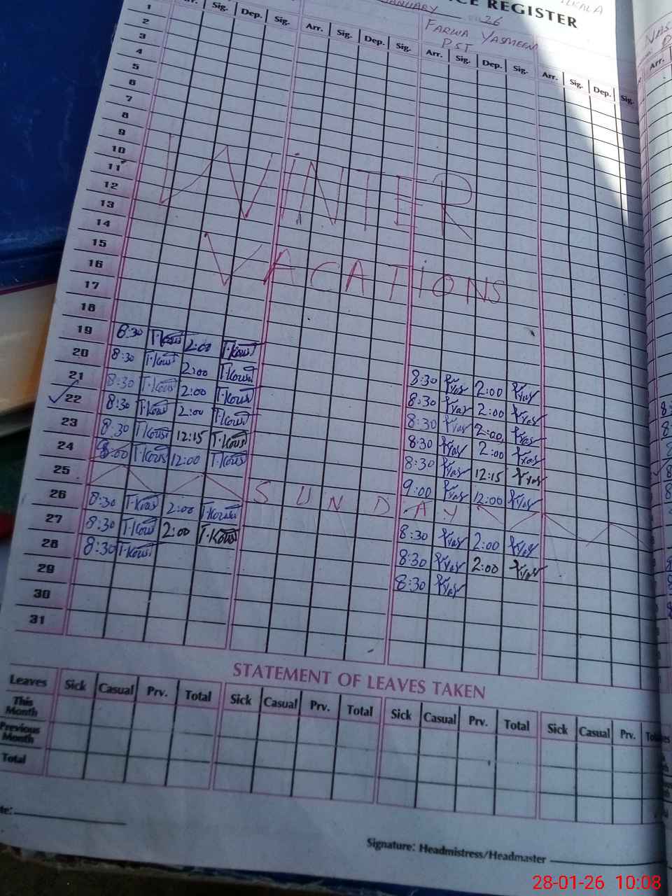 | Name: TA**** KO**** Designation: (School Headmaster's/Headmistress's) PST Phone/Cell Number: 03**** |