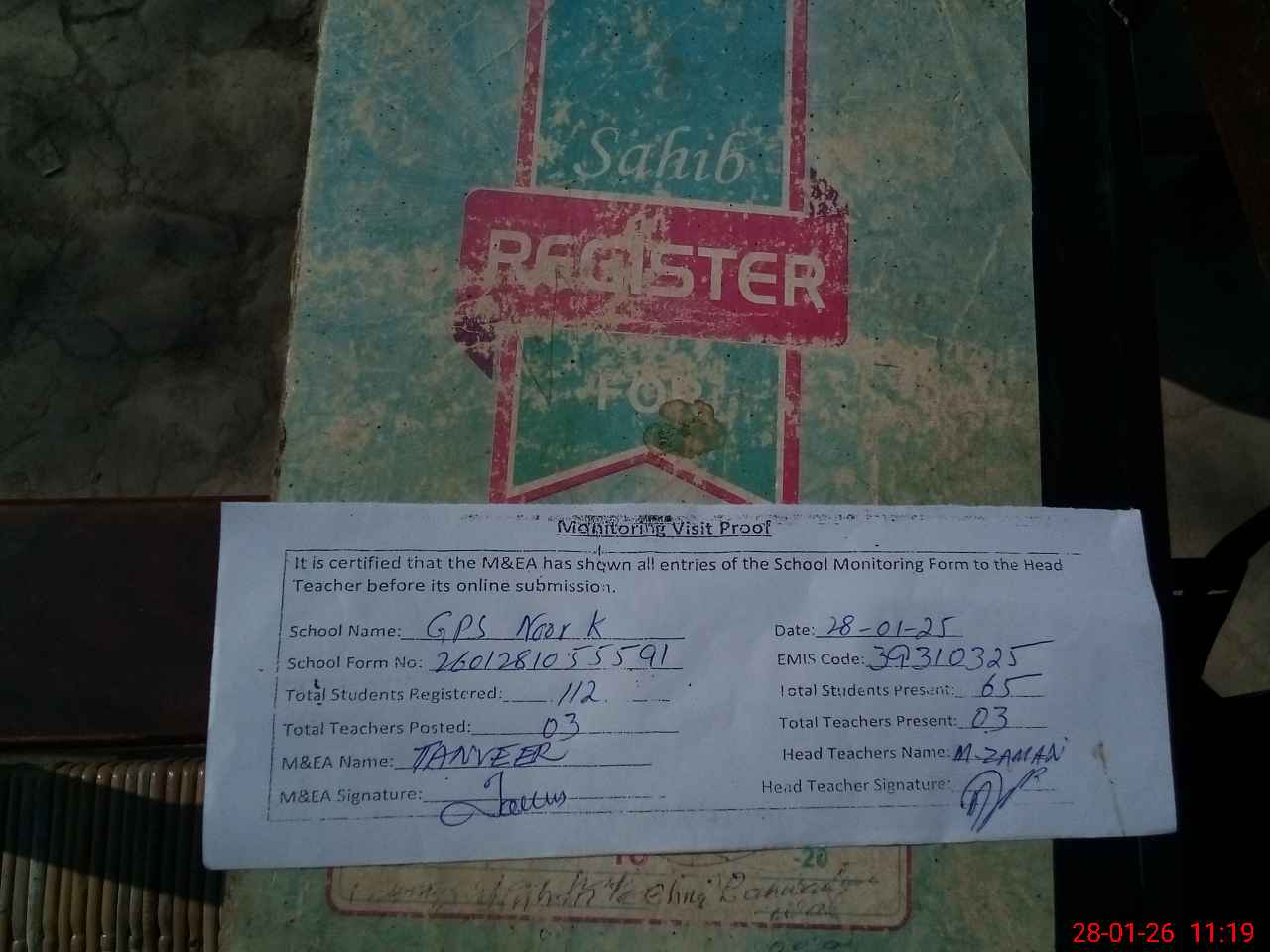| EMIS Code: 39310325 | Name of School: GPS NOOR KAY | |||