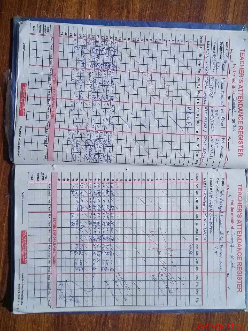 | CNIC | Full Name | Designation | R/C | Absence During Last Calender Month |