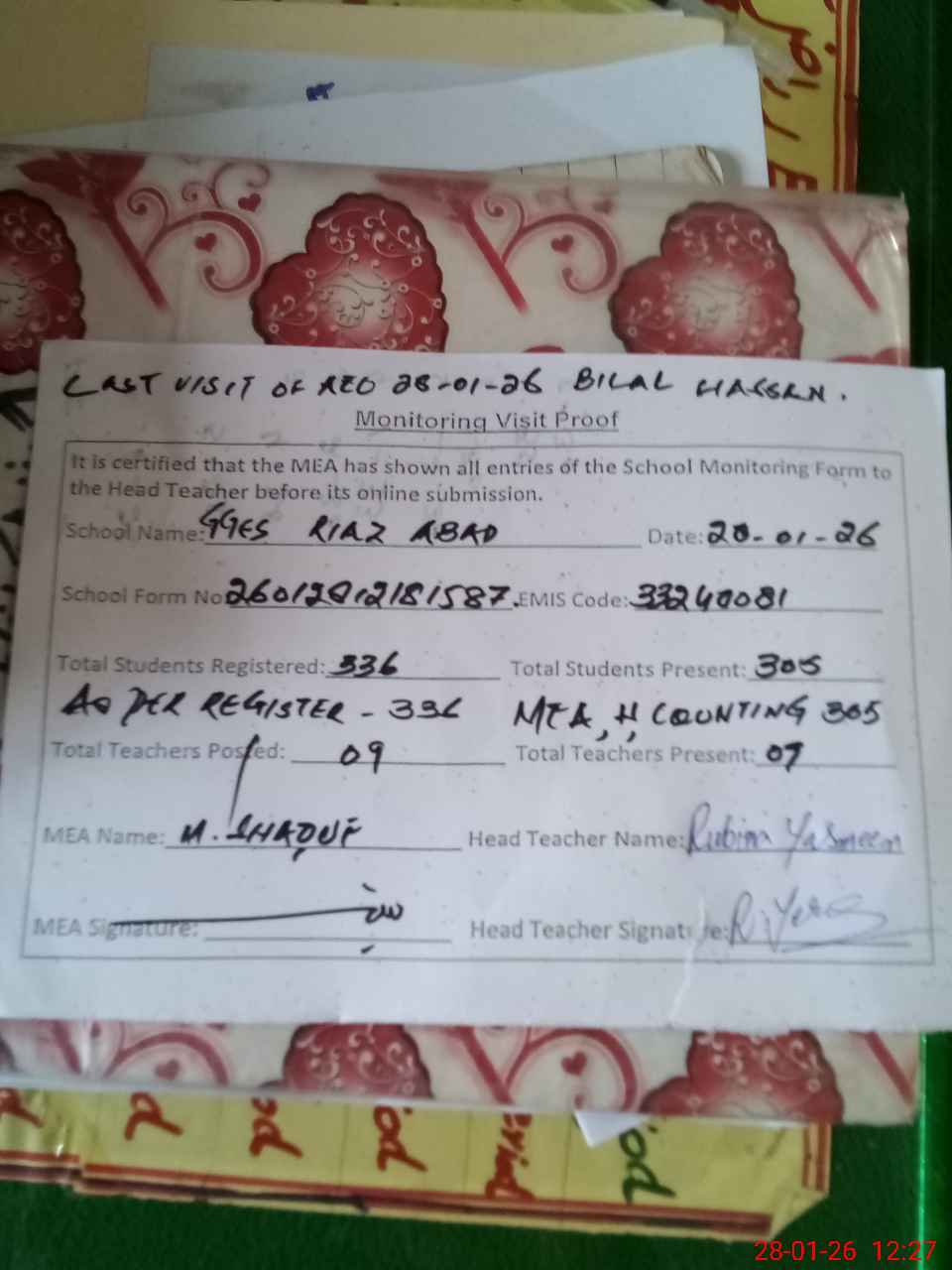 | EMIS Code: 33240081 | Name of School: GGES RIAZ ABAD | |||