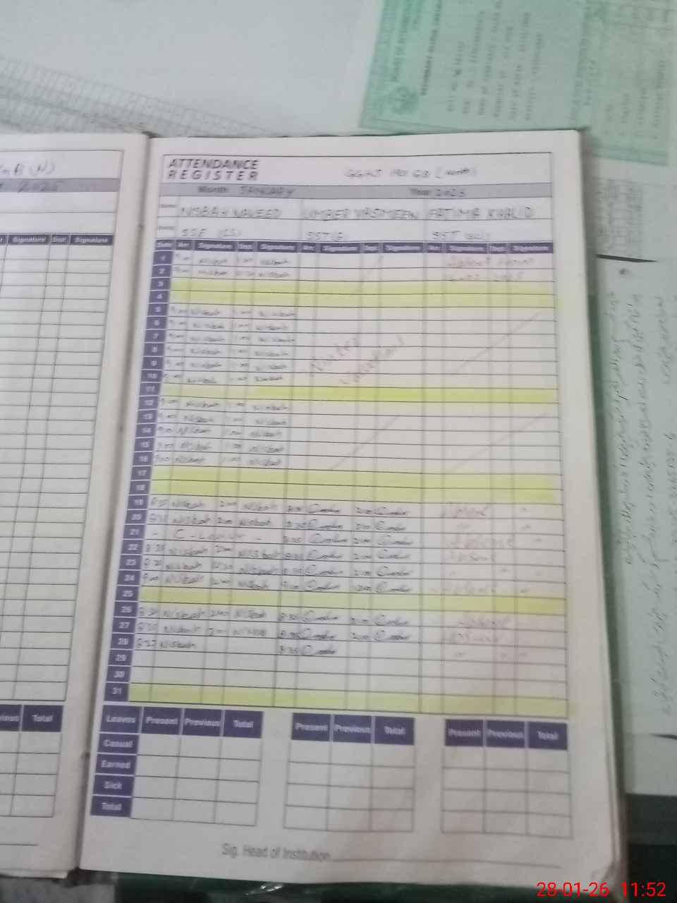 | 33**** | Fa**** Kh**** | SST Science | Regular | 0 | 0 | 31 | 0 | 0 | 0 | 0 | 0 | 0 | Absent (Un-Authorized) |