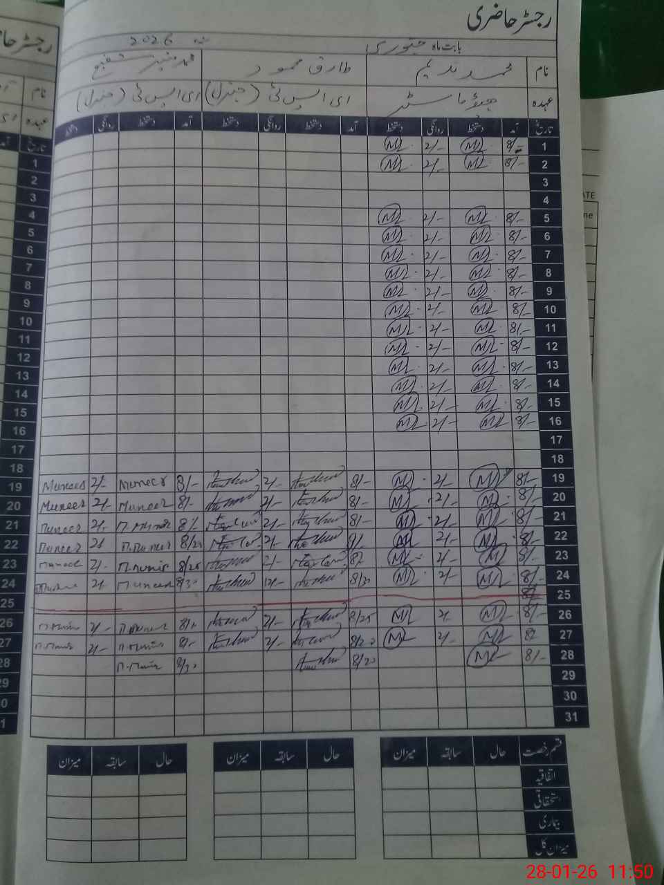 | CNIC | Full Name | Designation | R/C | Absence During Last Calender Month |