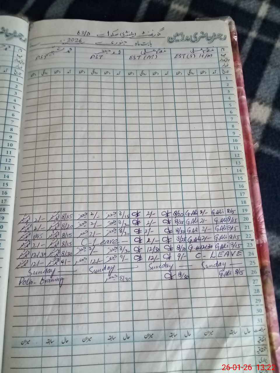 | CNIC | Full Name | Designation | R/C | Absence During Last Calender Month |