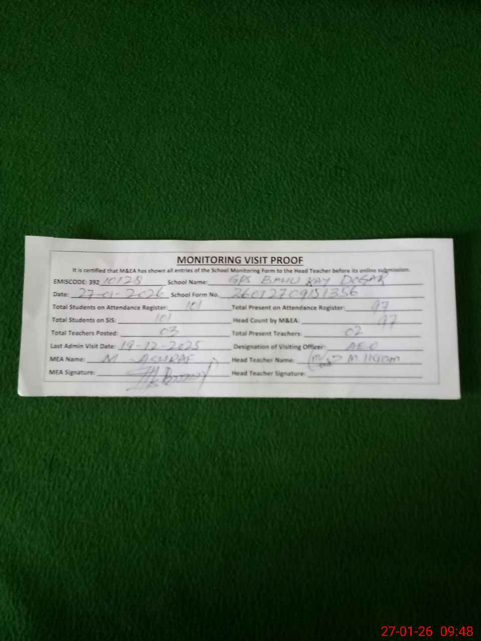 | EMIS Code: 39210128 | Name of School: GPS BAHU KEY DOGAR | |||