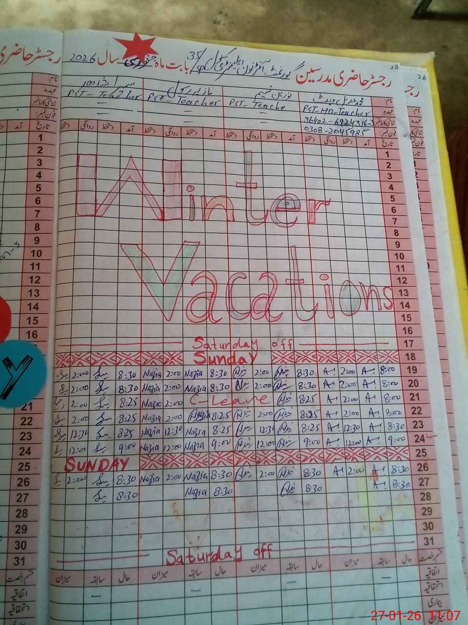 | Name: MU**** AD**** BU**** Designation: (School Headmaster's/Headmistress's) PST Phone/Cell Number: 03**** |