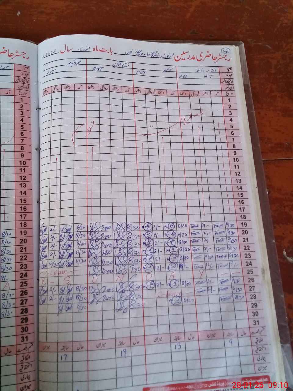 | CNIC | Full Name | Designation | R/C | Absence During Last Calender Month |