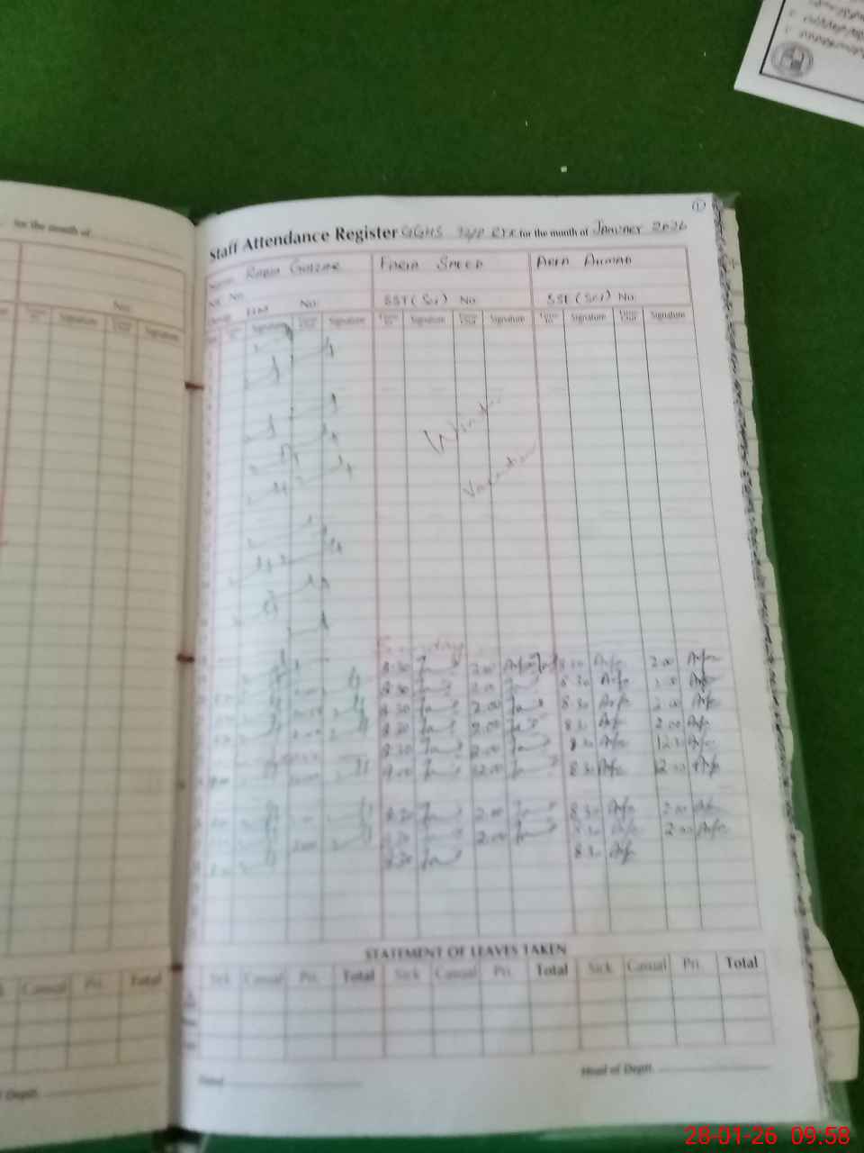 | Monitoring Date: 28-01-2026 | Start Time: 28-01-2026 09:32 AM | End Time: 28-01-2026 09:59 AM | Name of MEA: Mu**** Aj**** | |