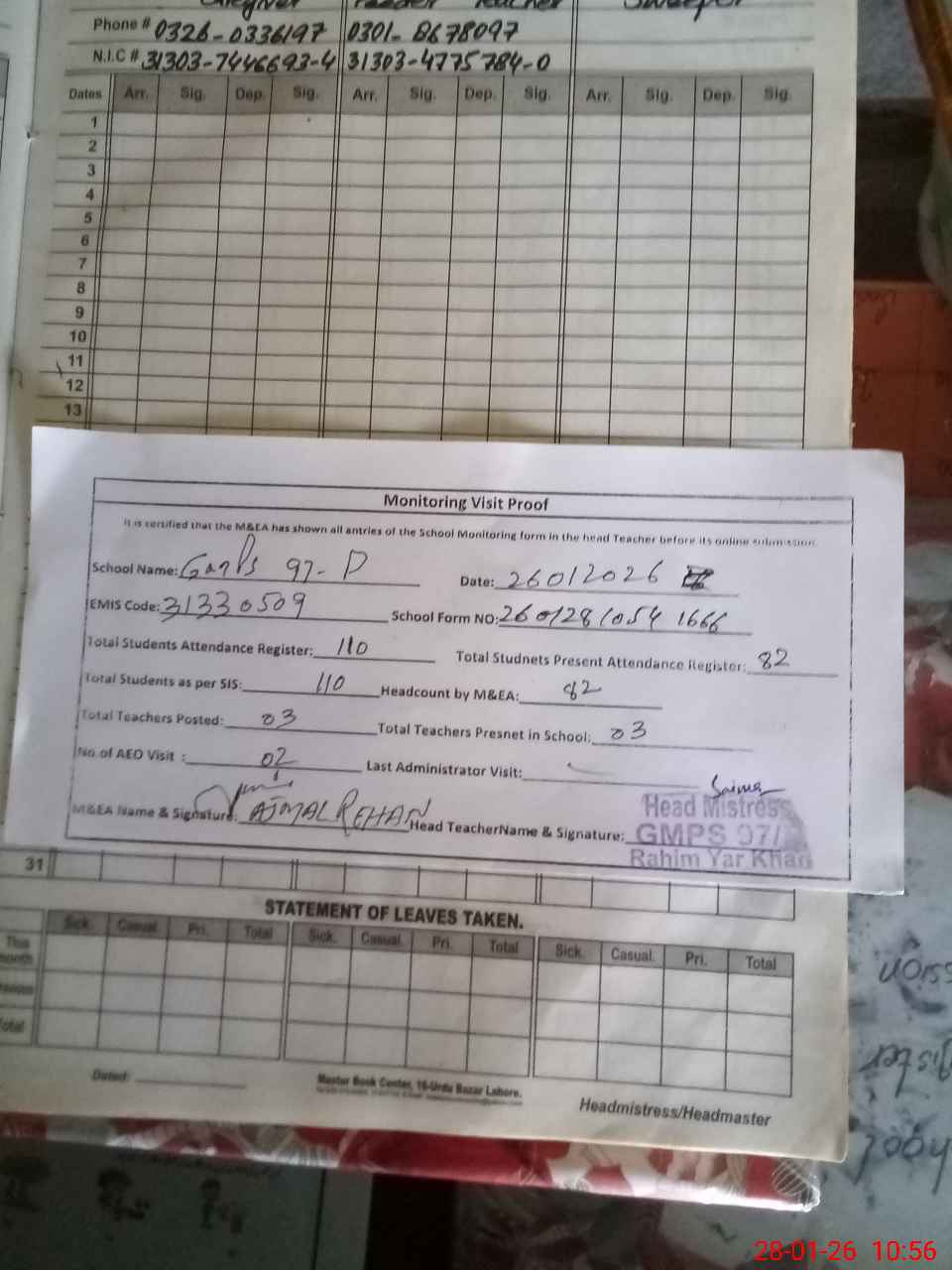 | EMIS Code: 31330509 | Name of School: GMPS CHAK 97/P | |||