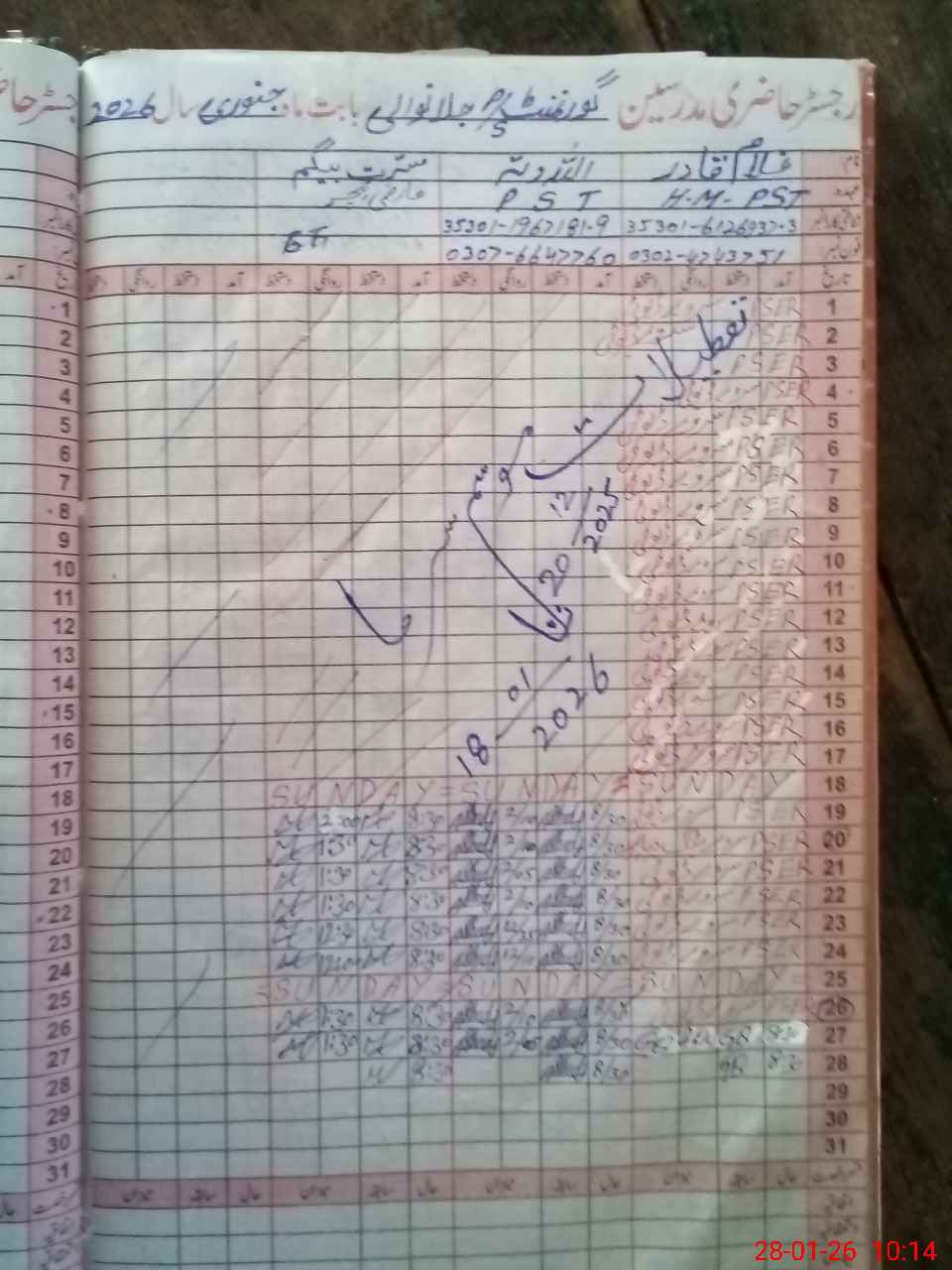 | Name: Gh**** Qa**** Designation: (School Headmaster's/Headmistress's) PST Phone/Cell Number: 03**** |