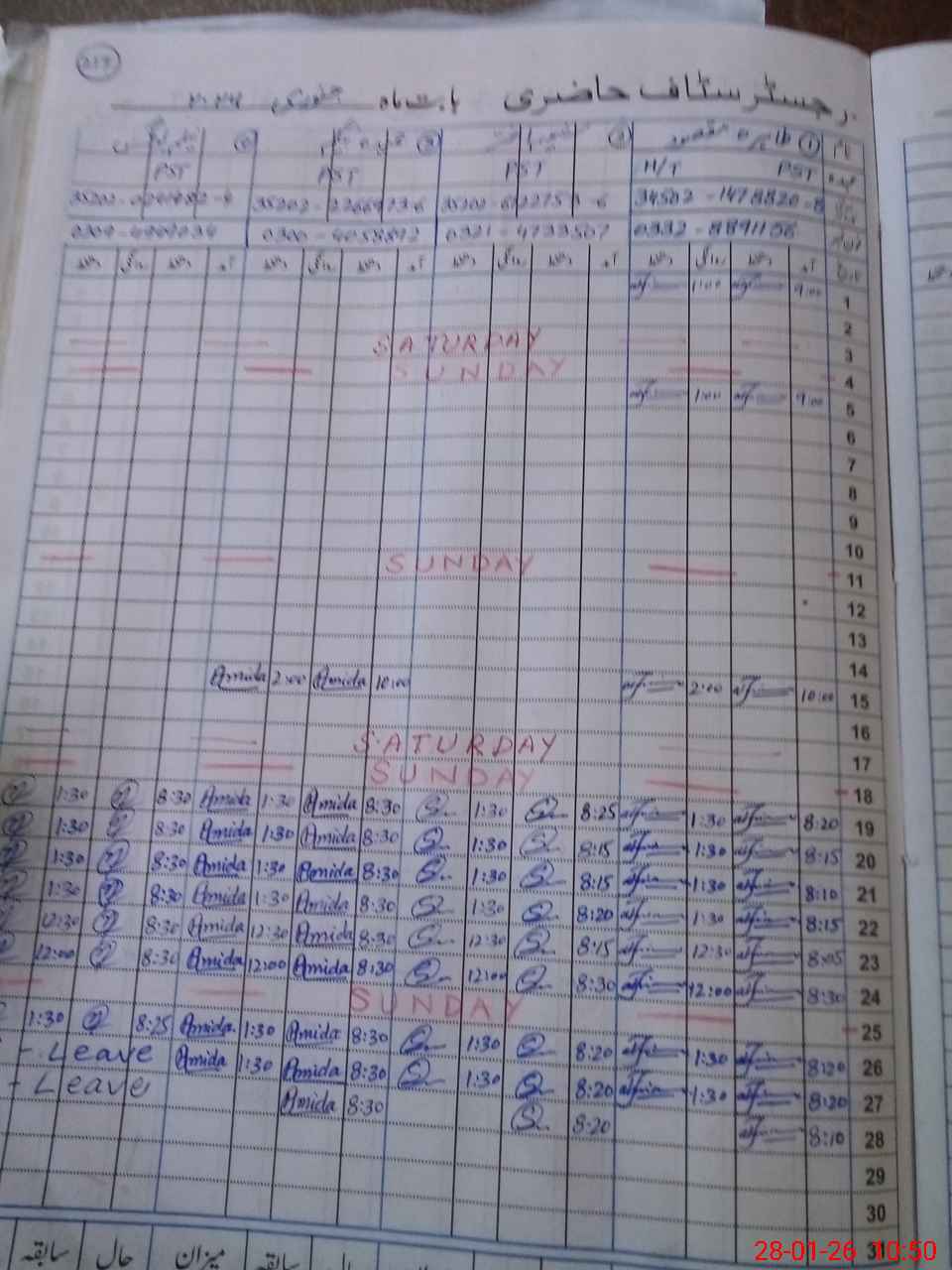 | CNIC | Full Name | Designation | R/C | Absence During Last Calender Month |