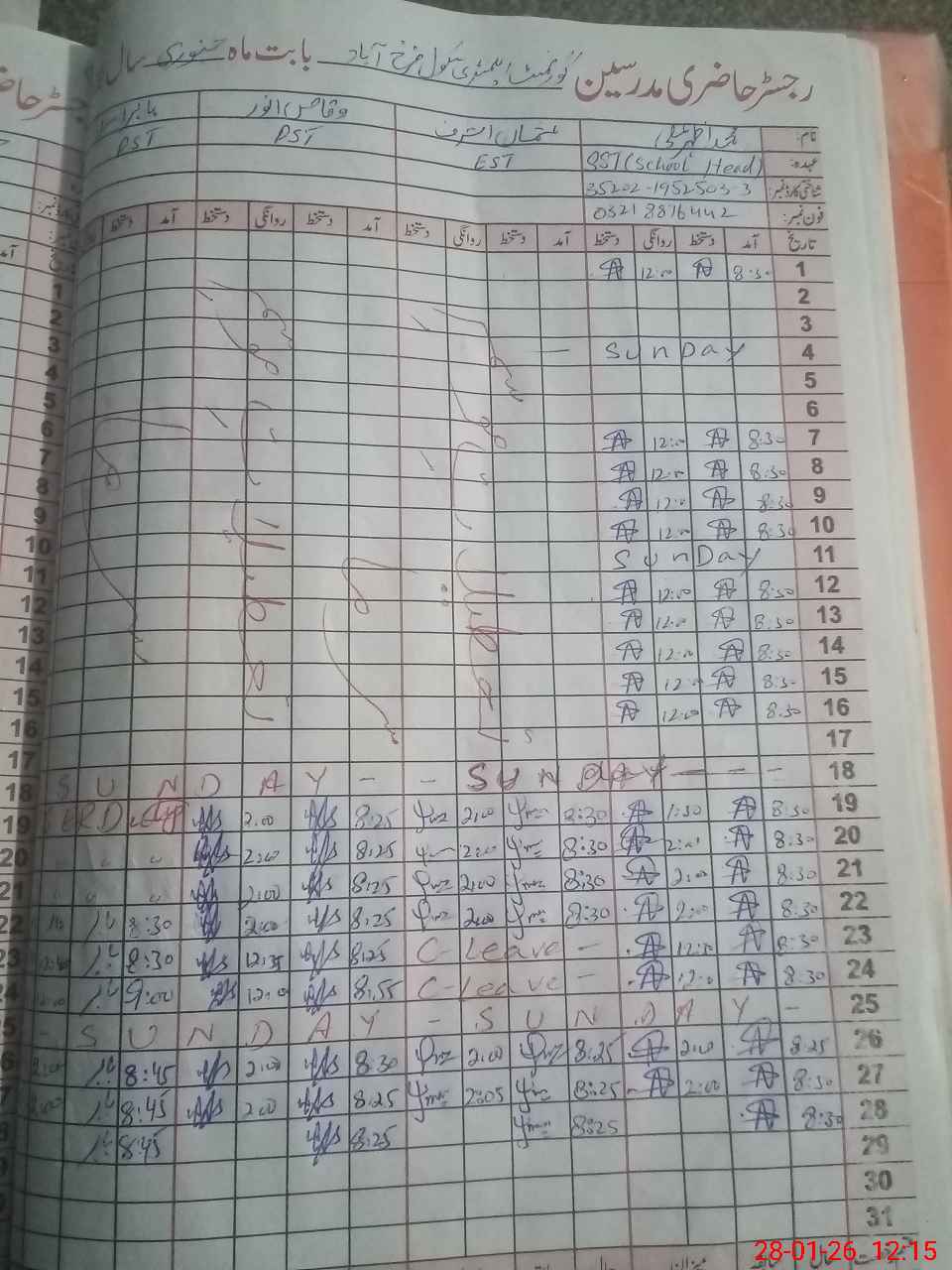 | Name: Mu**** Az**** Al**** Designation: (School Headmaster's/Headmistress's) SST Phone/Cell Number: 03**** |