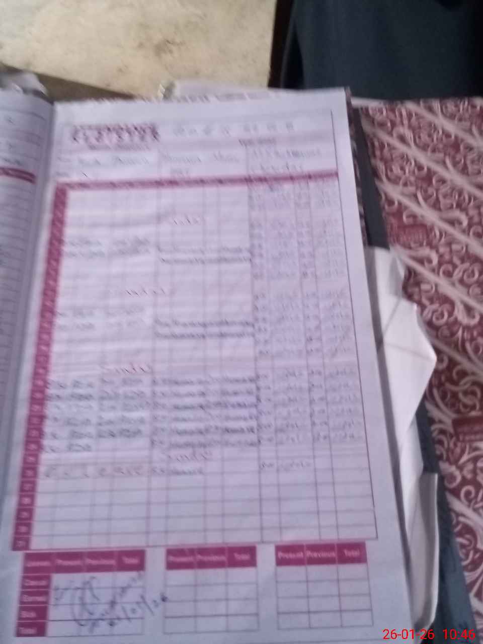 | Total no. of Classrooms: 7 No. of Classrooms Used for Teaching: 5 No. of Classrooms Storing Old Furniture, FTBs, etc: 0Comments if Any: Nsb and Ftf record not available |