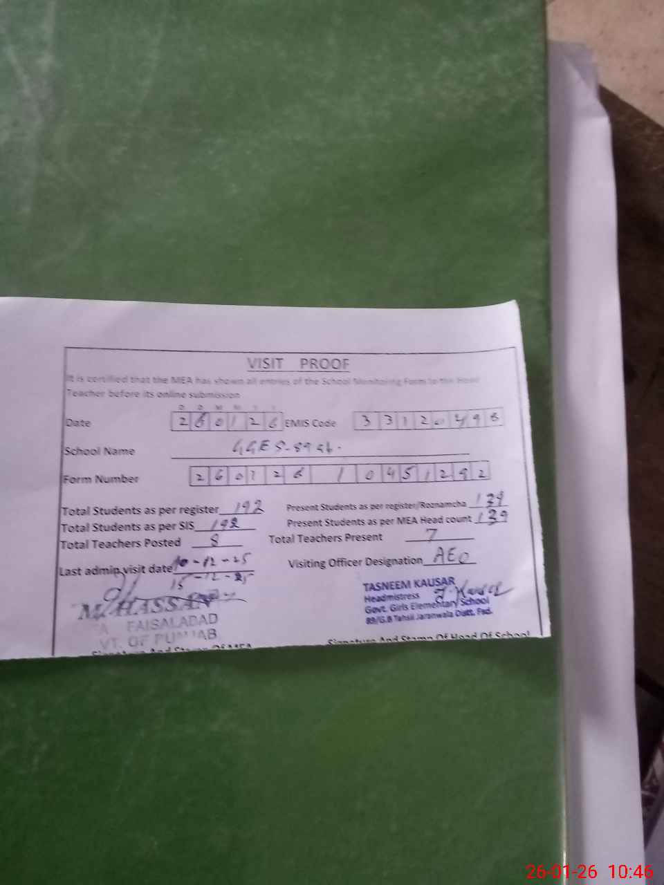| EMIS Code: 33120498 | Name of School: GGES CHAK 89 GB SATIANA | |||