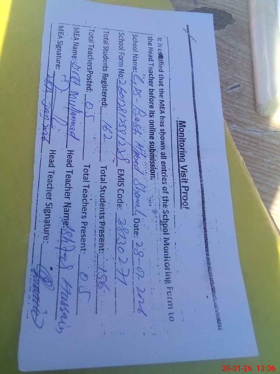 | EMIS Code: 38130271 | Name of School: GPS BASTI SHUMALI HAIDAR ABAD | |||