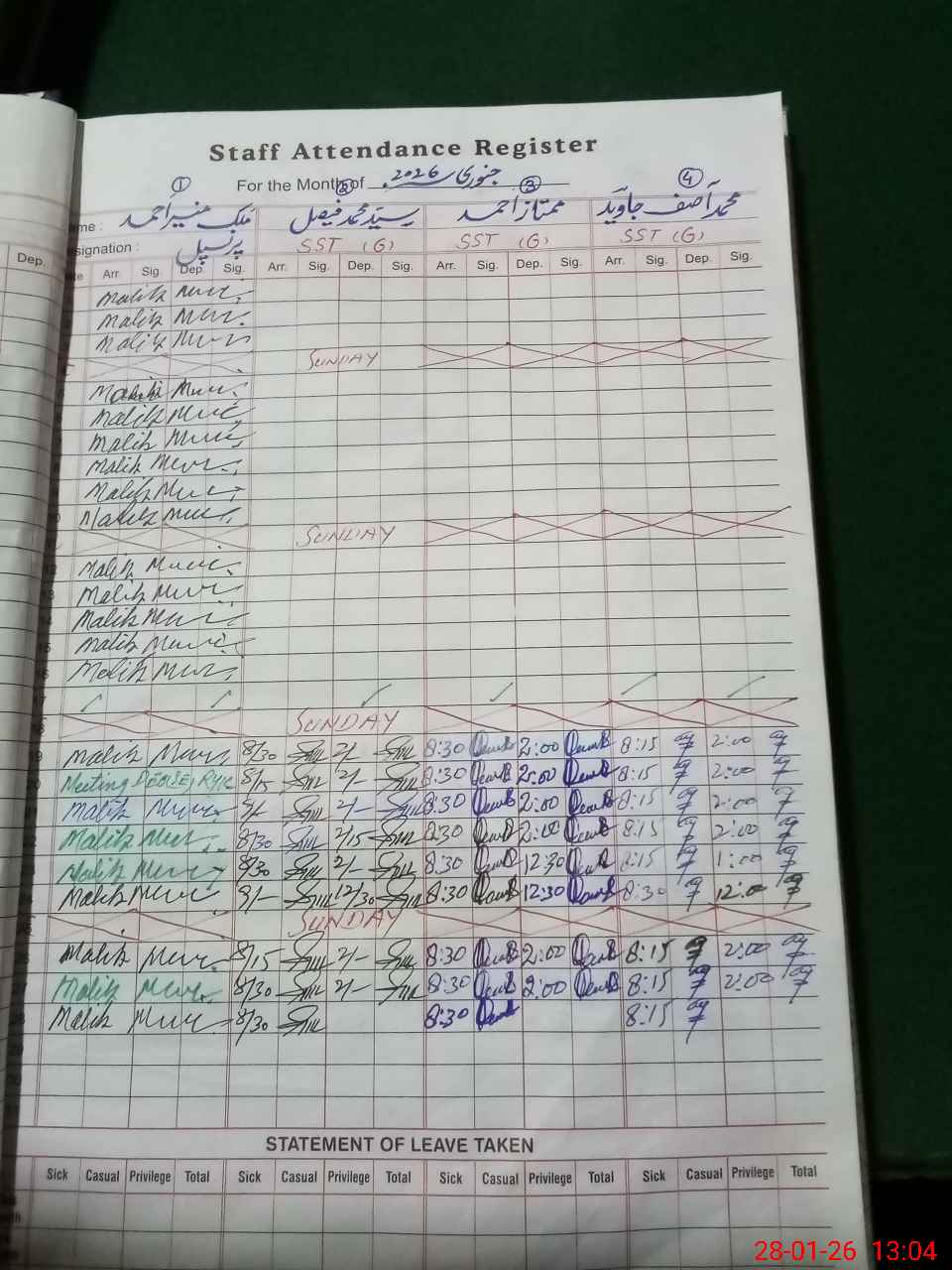| Leave | Duty | Absent | Maternity | Medical | Ex- Pak |