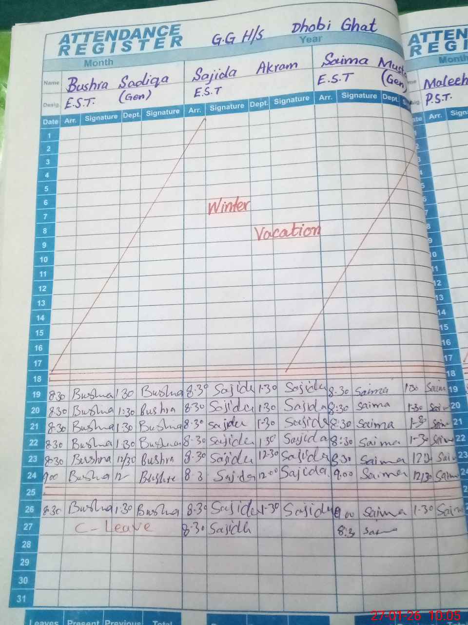| Leave | Duty | Absent | Maternity | Medical | Ex- Pak |