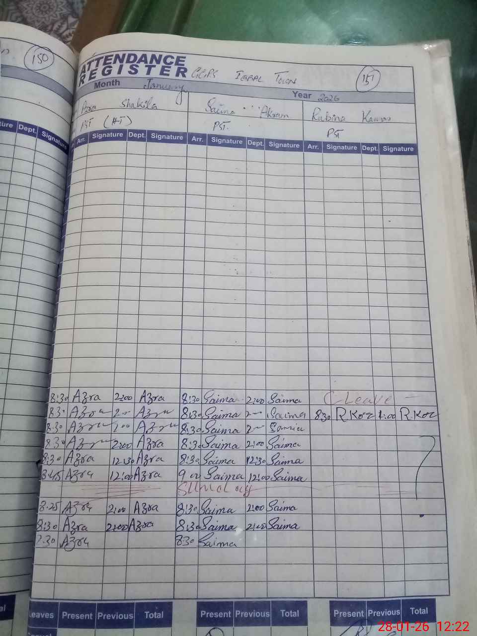 | Leave | Duty | Absent | Maternity | Medical | Ex- Pak |