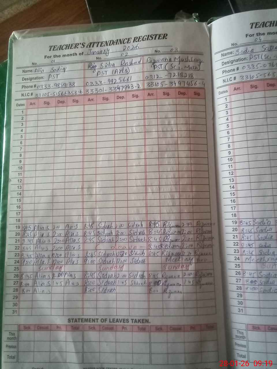 | Name: AL**** SA**** Designation: (School Headmaster's/Headmistress's) PST Phone/Cell Number: 03**** |