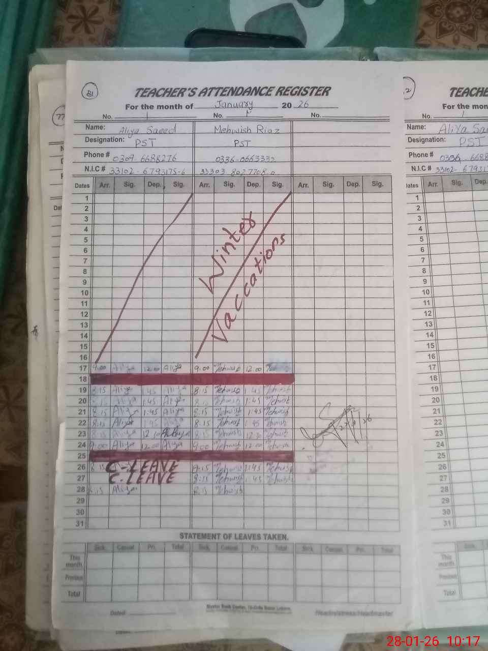 | Name: Al**** SA**** Designation: (School Headmaster's/Headmistress's) PST Phone/Cell Number: 03**** |