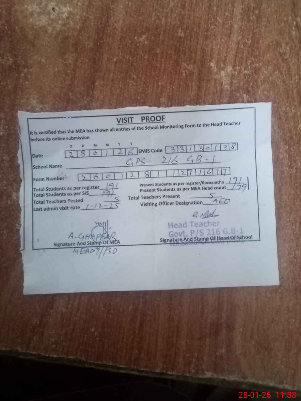 | EMIS Code: 33130134 | Name of School: GPS 216 GB I | |||