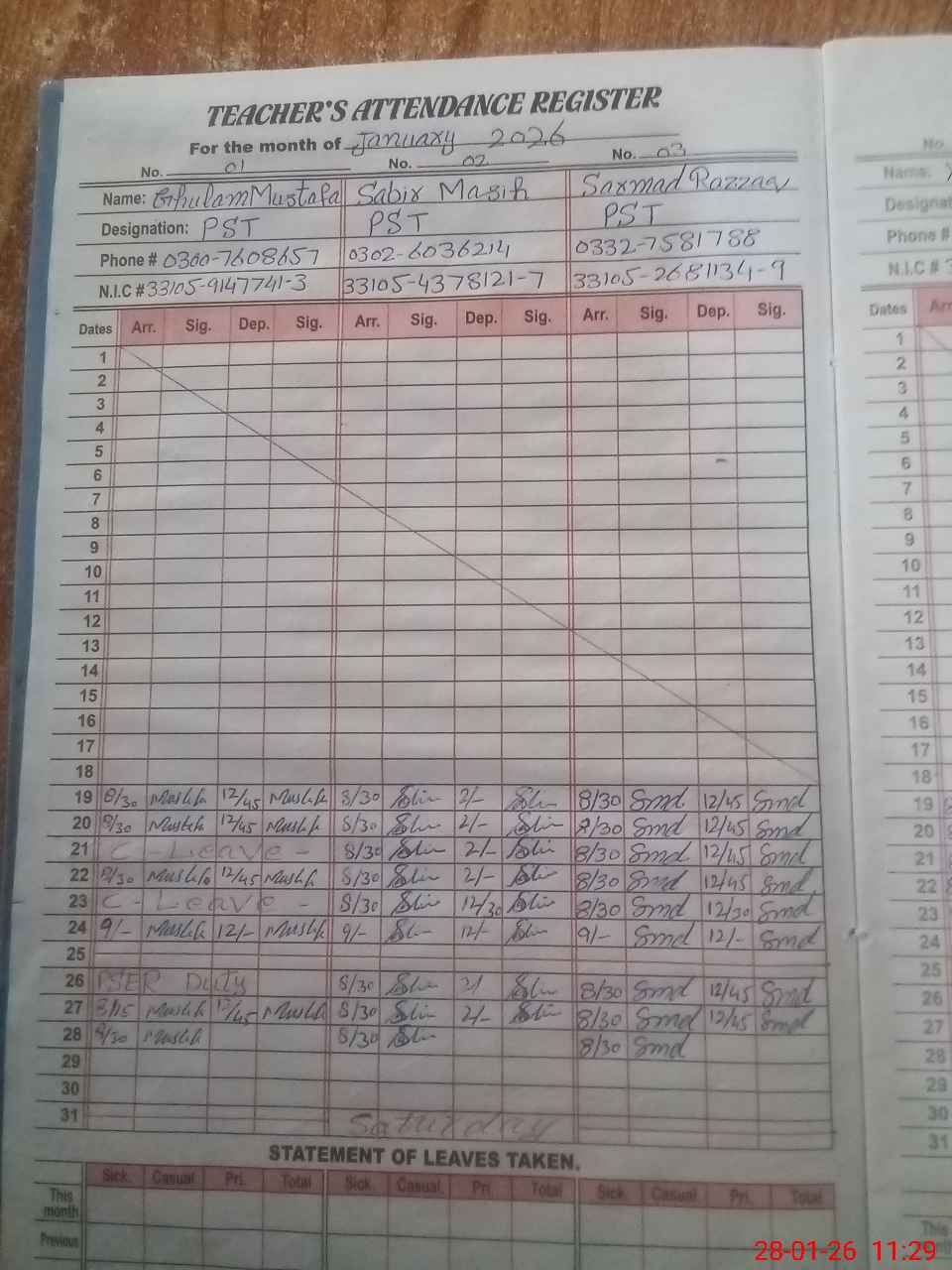| Name: GH**** MU**** Designation: (School Headmaster's/Headmistress's) PST Phone/Cell Number: 03**** |