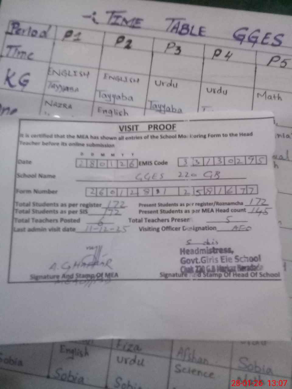 | Certified that this School was Inspected by the Undersigned MEA/DMO Today and the Information Stated Above is as Per Record. | |||||