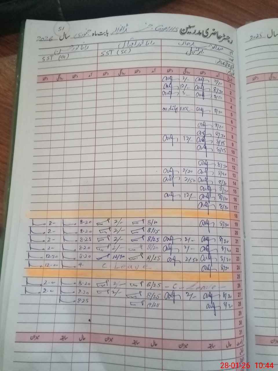 | Leave | Duty | Absent | Maternity | Medical | Ex- Pak |
