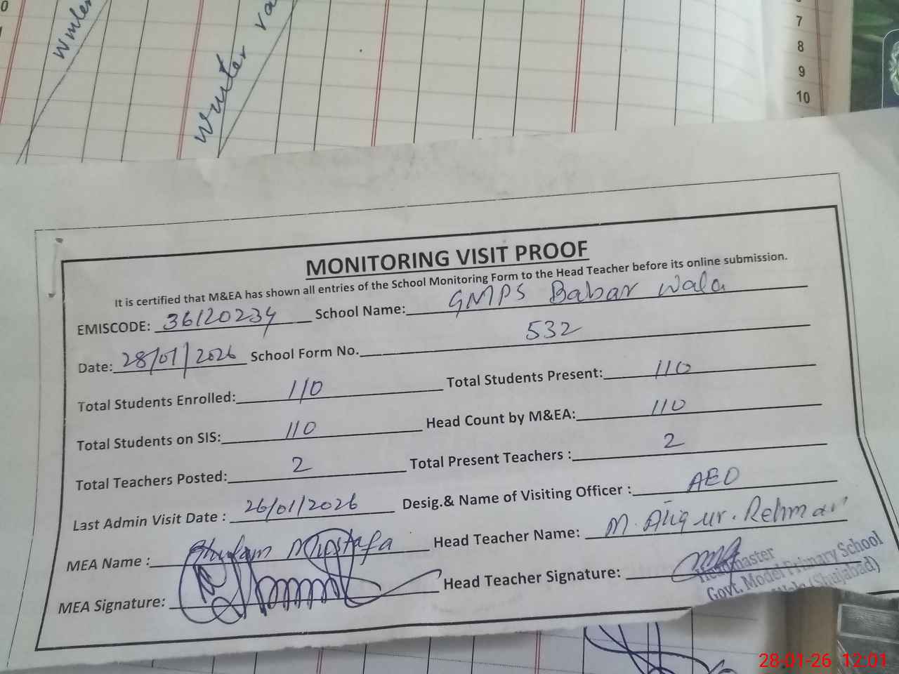 | EMIS Code: 36120234 | Name of School: GMPS BABAR WALA (KALO WALA) | |||