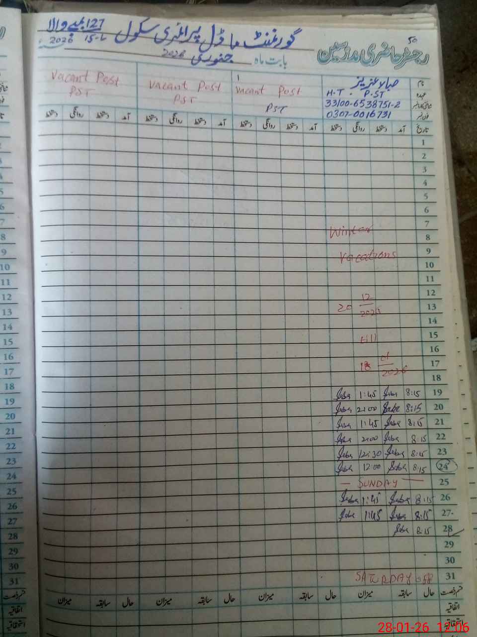 | Name: Sa**** Az**** Designation: (School Headmaster's/Headmistress's) PST Phone/Cell Number: 03**** |