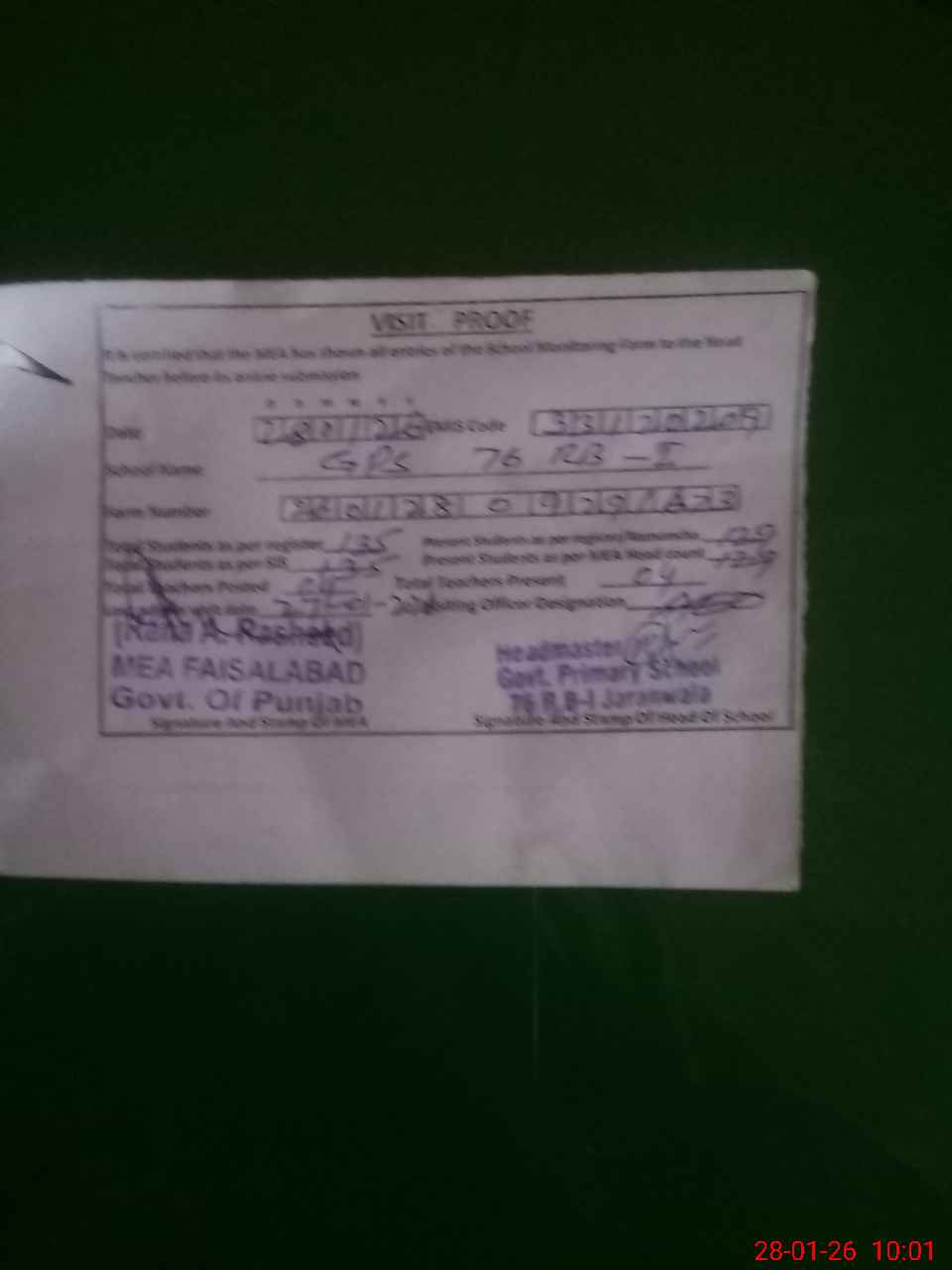| EMIS Code: 33120209 | Name of School: GPS CHAK 76 RB I | |||