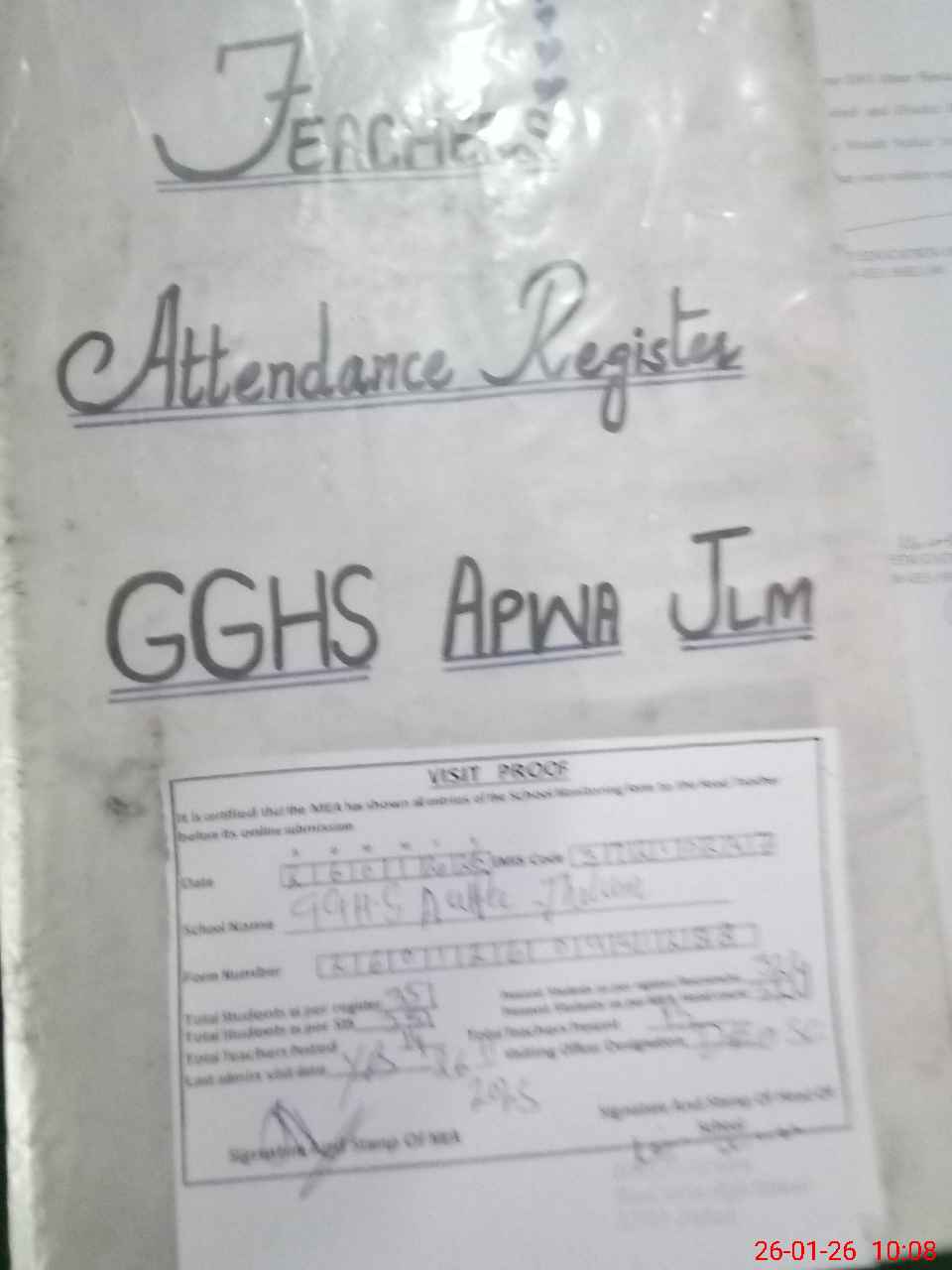 | Attendance Register | Head Teacher | MEA with School | Visit Proof |