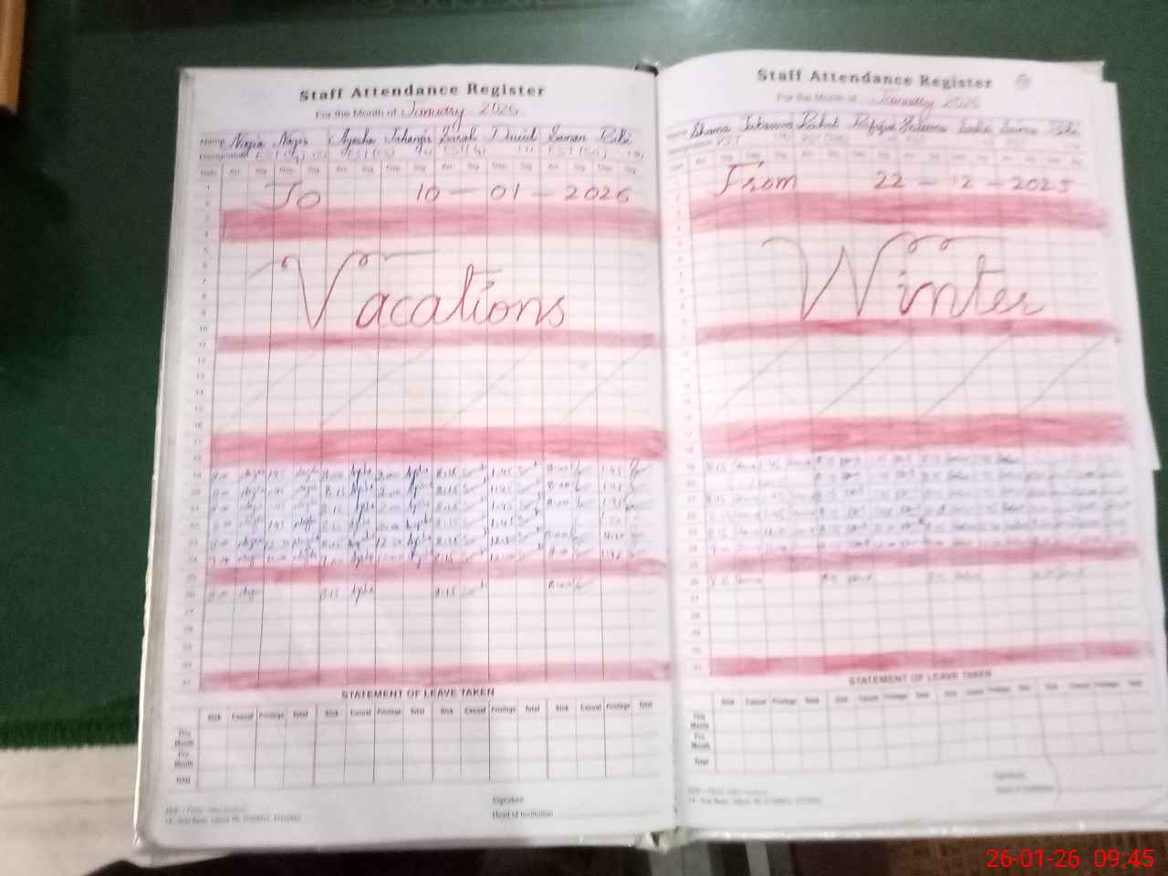 | Leave | Duty | Absent | Maternity | Medical | Ex- Pak |