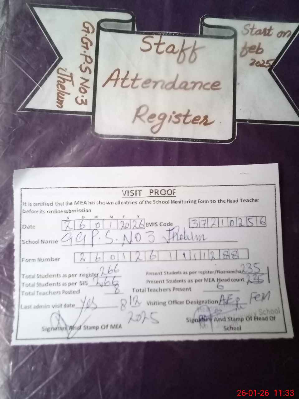 | EMIS Code: 37210256 | Name of School: GGPS NO. 3 JEHLUM | |||