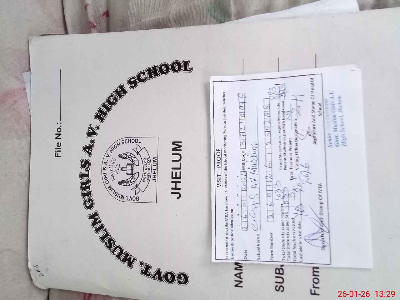 | EMIS Code: 37210076 | Name of School: GGHS AV MUSLIM JHELUM | |||