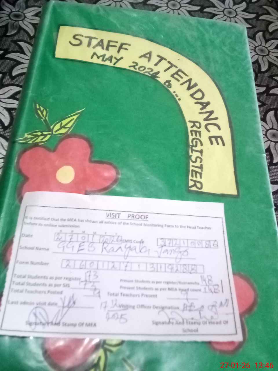 | Attendance Register | Head Teacher | MEA with School | Visit Proof |
