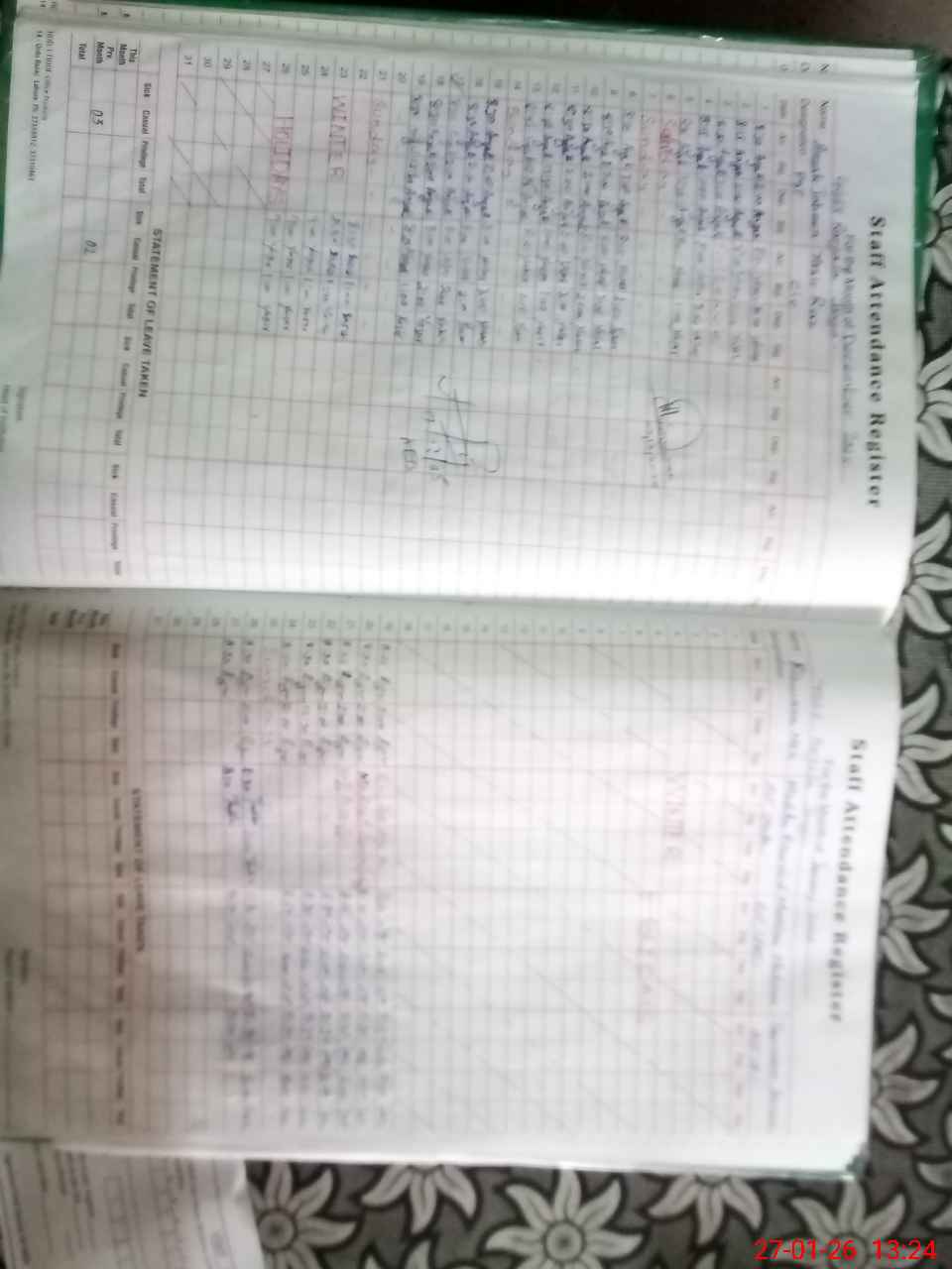 | Leave | Duty | Absent | Maternity | Medical | Ex- Pak |