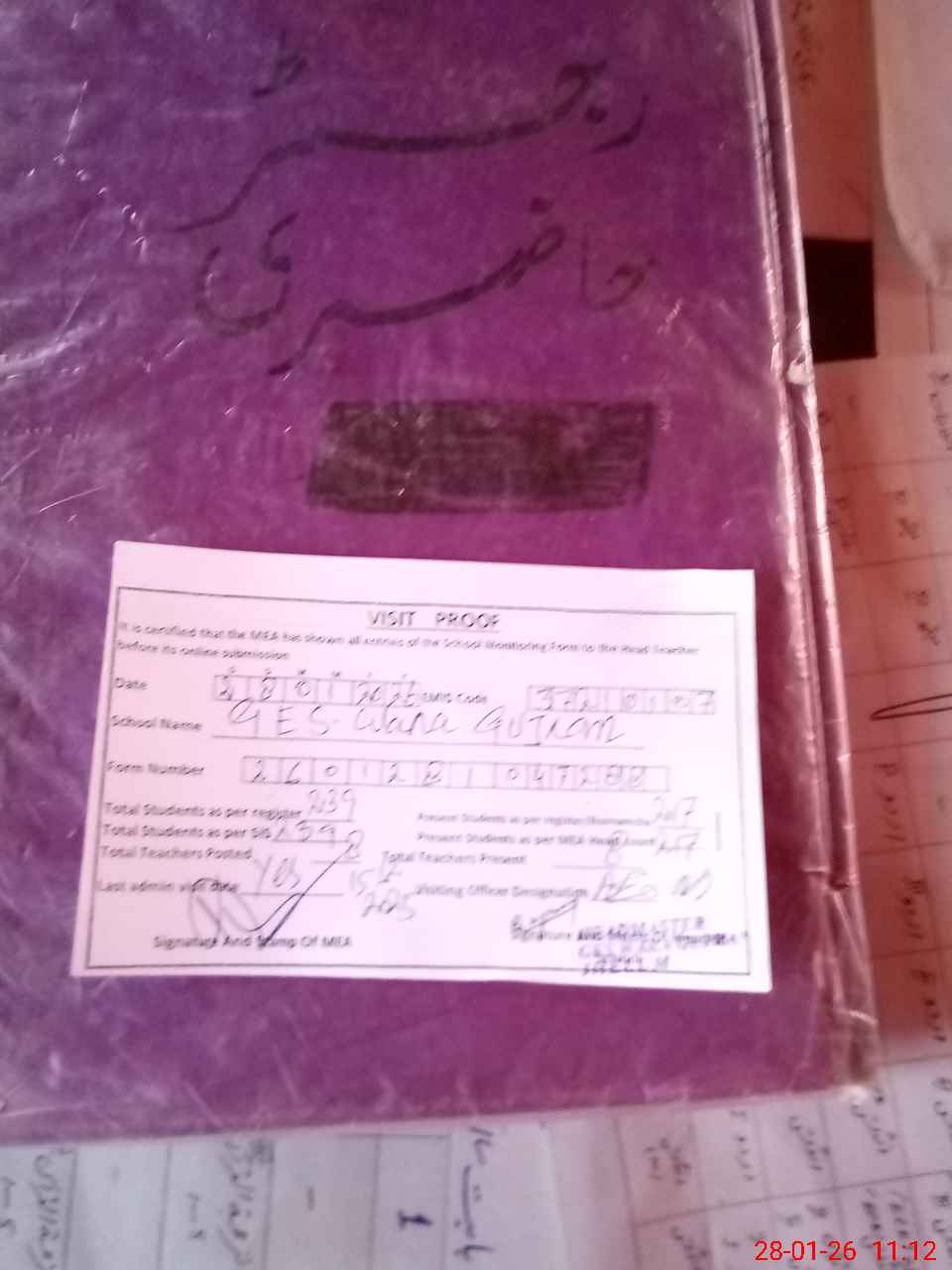| Attendance Register | Head Teacher | MEA with School | Visit Proof |