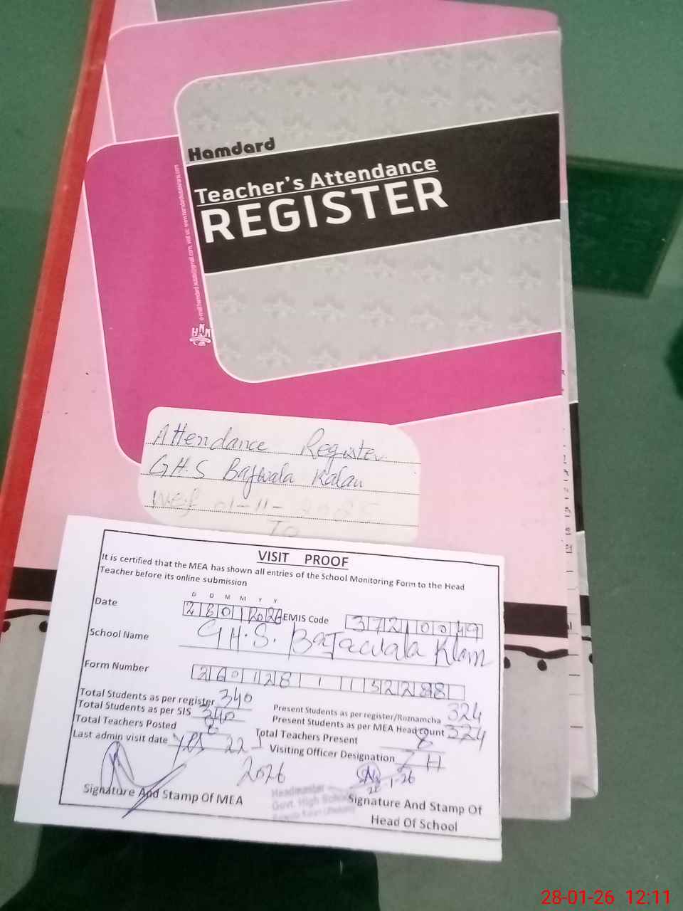 | Attendance Register | Head Teacher | MEA with School | Visit Proof |