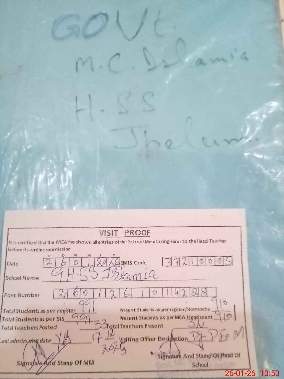 | EMIS Code: 37210005 | Name of School: GHSS MC ISLAMIA JHELUM | |||