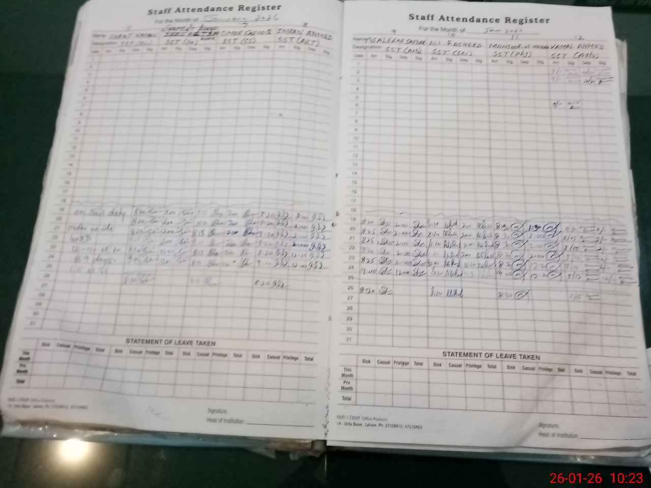 | CNIC | Full Name | Designation | R/C | Absence During Last Calender Month |
