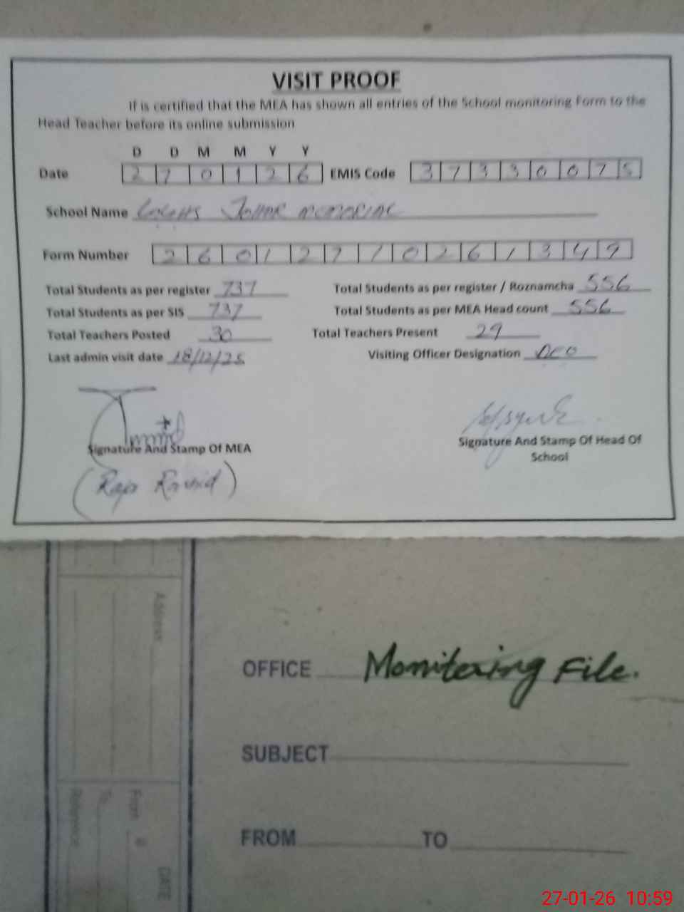 | Certified that this School was Inspected by the Undersigned MEA/DMO Today and the Information Stated Above is as Per Record. | |||||