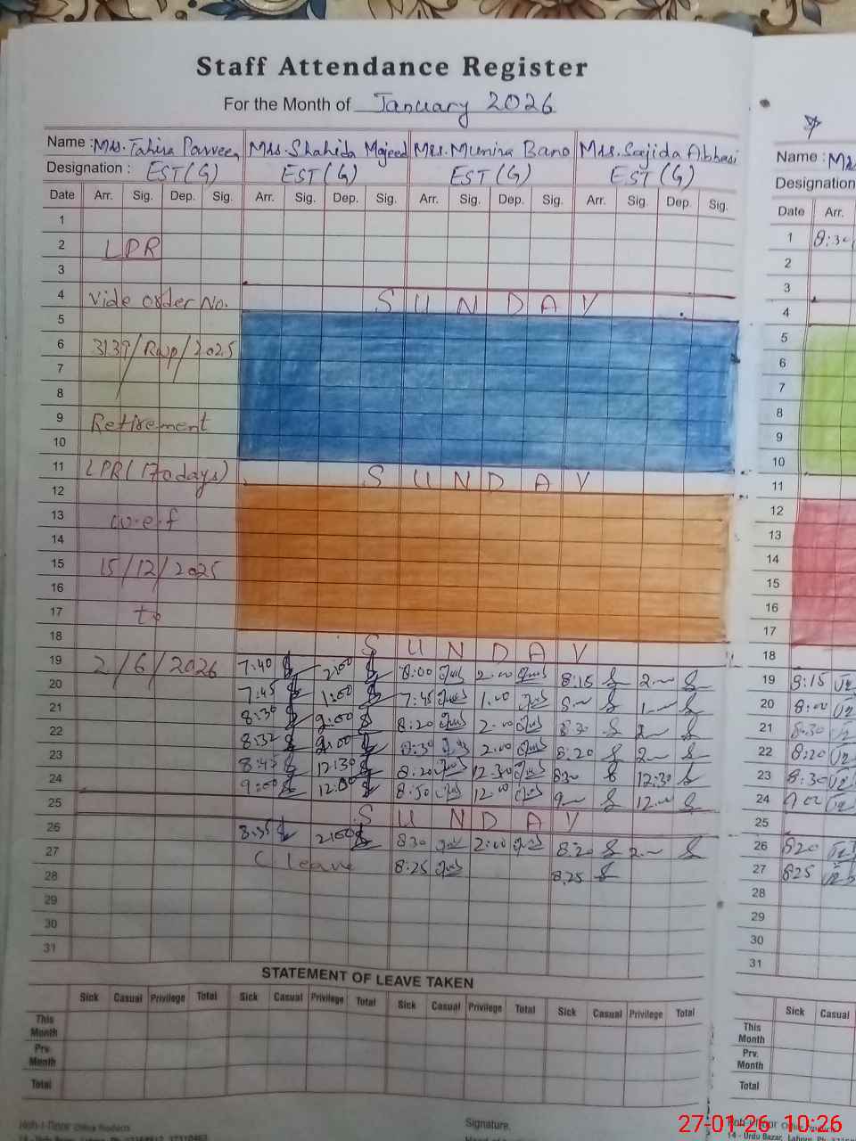 | Monitoring Date: 27-01-2026 | Start Time: 27-01-2026 10:09 AM | End Time: 27-01-2026 10:59 AM | Name of MEA: Ra**** Ra**** Al**** | |