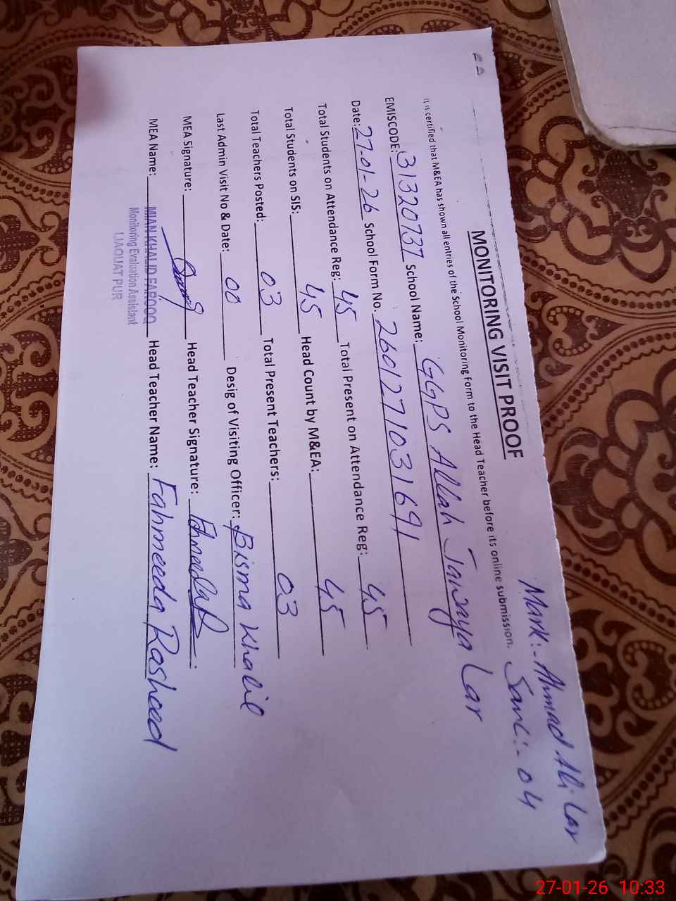 | EMIS Code: 31320737 | Name of School: GGPS ALLAH JIWAYA LARR | |||