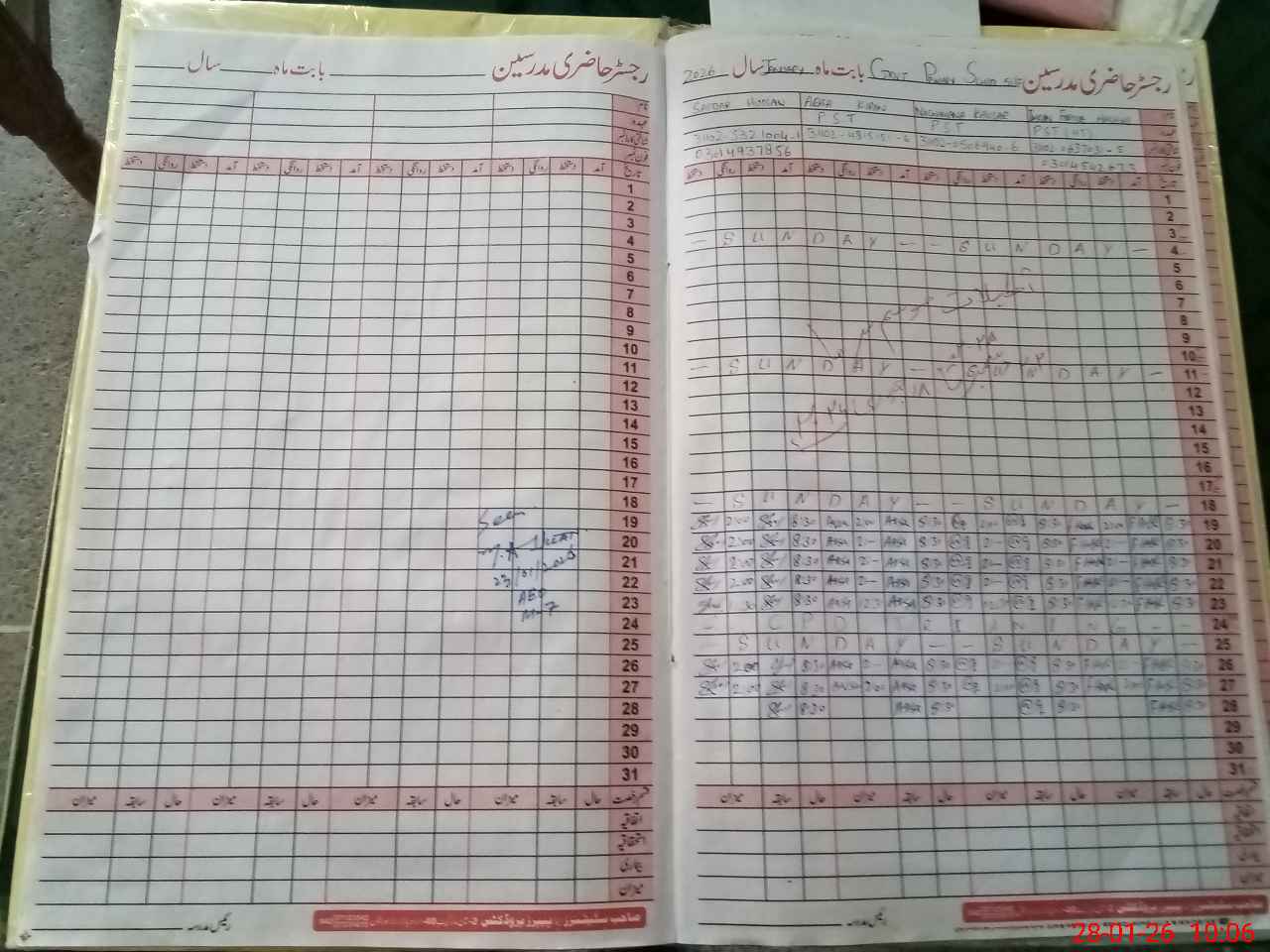 | CNIC | Full Name | Designation | R/C | Absence During Last Calender Month |