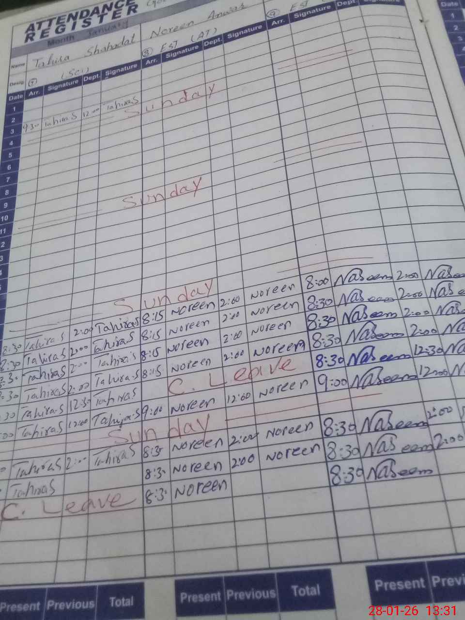 | CNIC | Full Name | Designation | R/C | Absence During Last Calender Month |